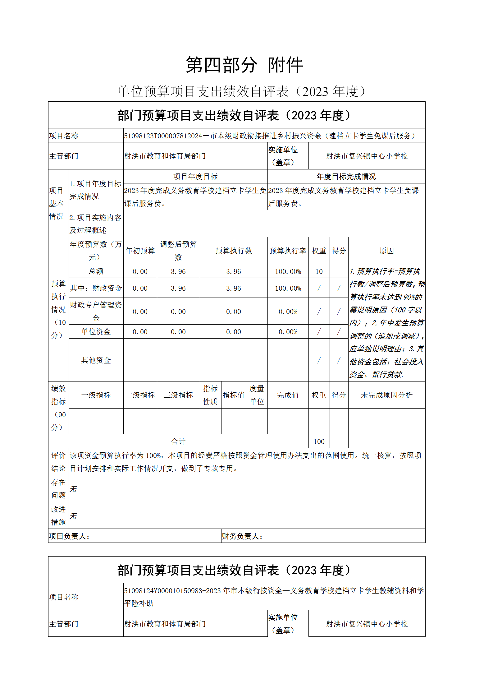 2023年度射洪市复兴镇中心小学校单位决算