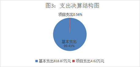 2023年度本年支出合计823.48万元,其中:基本支出818.87万元,占99.43%;项目支出4.62万元,占0.56%;上缴上级支出0万元,占0%;经营支出0万元,占0%;对附属单位补助支出0万元,占0%。