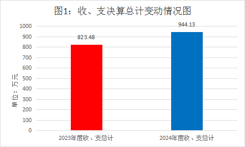 2024年度收、支总计均为944.13万元。与2023年度相比,收、支总计各增加120.65万元,增长14.65%。主要变动原因是安乐小学撤校,人员合并到复兴镇小收入增加。