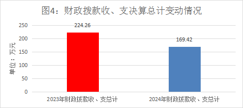 2024年度财政拨款收入、支出总计均为169.42万元。与2023年度相比,收入、支出总计各减少54.84万元,减幅24.45%。主要变动原因是单位厉行节约,单位人员退休2人,人员经费相应减少。