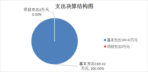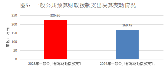 2024年度一般公共预算财政拨款支出169.42万元,占本年支出合计的100%。与2023年度相比一般公共预算财政拨款支出减少54.84万元,减幅24.45%。主要变动原因是单位厉行节约,单位人员退休2人,人员经费相应减少。