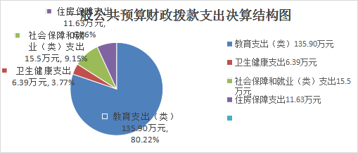 2024年度一般公共预算财政拨款支出169.42万元,主要用于以下方面:教育支出135.90万元,占80.22%;社会保障和就业支出15.50万元,占9.15%;卫生健康支出6.39万元,占3.77%;住房保障支出11.63万元,占6.86%。