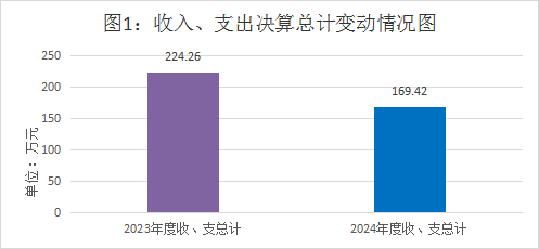 2024年度收入、支出总计均为169.42万元。与2023年度相比,收入、支出总计各减少54.84万元,减幅24.45%。主要变动原因是单位厉行节约,单位人员退休2人,人员经费相应减少。