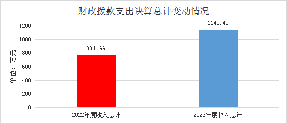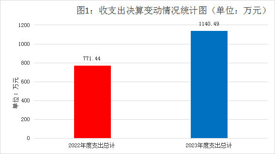 2023年度收入总计1140.49万元,与2022年相比收入总计减少369.05万元,上升32.4%;2023年度支出1140.49万元,2022年支出771.44万元,增加369.05万元,支出增加32.4%。