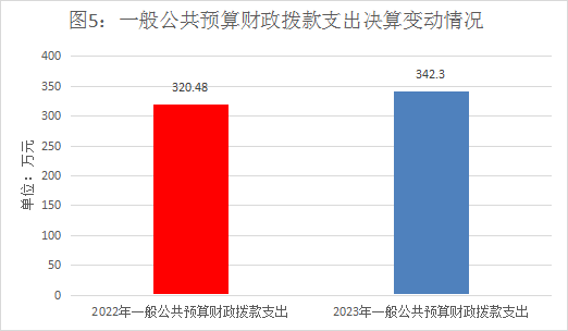 2023年度一般公共预算财政拨款支出342.3万元,占本年支出合计的100%。与2022年度相比,一般公共预算财政拨款支出增加21.82万元,增长6.8%。主要变动原因是人员经费支出增加。