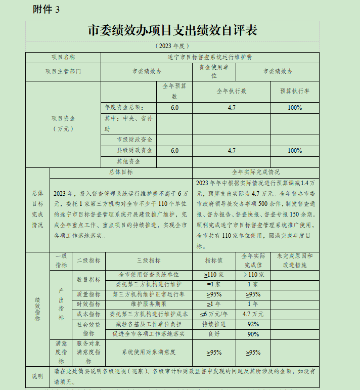 4.2023年度遂宁市目标督查系统运行维护费项目支出绩效自评报告