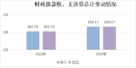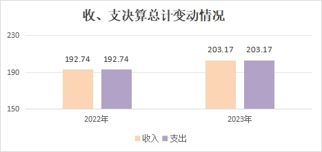 2023年度收、支总计均为203.17万元。与2022年度相比,收、支总计各增加10.43万元,增长5.4%。主要变动原因是人员增加,工资调标。