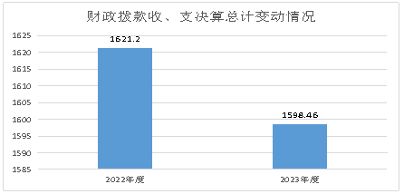 2023年度财政拨款收、支总计均为1598.46万元。与2022年度相比,财政拨款收、支总计各减少22.74万元,下降1.4%。主要变动原因是本年度项目经费支出减少。