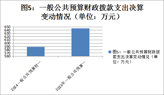 2024年度一般公共预算财政拨款支出589.17万元,占本年支出合计的100%。与2023年度相比,一般公共预算财政拨款支出减少55.94万元,下降8.67%。主要变动原因是本年度有人员退休,人员经费支出减少。