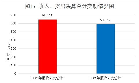 2024年度收入、支出总计均为589.17万元。与2023年度相比,收入、支出总计各减少55.94万元,下降8.67%。主要变动原因是本年度有人员退休,人员经费支出减少。