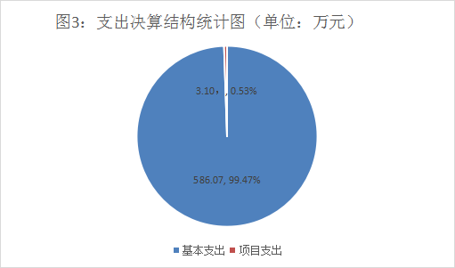 2024年度本年支出合计589.17万元,其中:基本支出586.07万元,占99.47%;项目支出3.10万元,占0.53%。