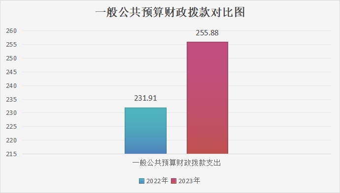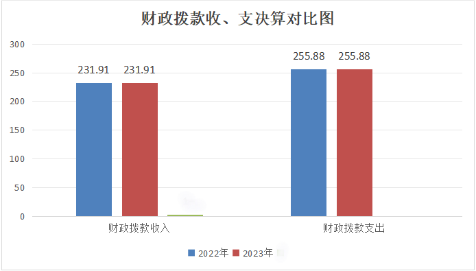 2023年度财政拨款收、支总计均为255.88万元。与2022年度相比,财政拨款收、支总计各增加23.97万元,增长9.4%。主要变动原因是2023年有特岗人员经费及过渡期医务人员临时工作补助财政拨款收入。