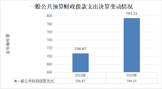 2023年度一般公共预算财政拨款支出794.15万元,占本年支出合计的34.2%。与2022年度相比,一般公共预算财政拨款支出增加87.28万元,增长12.3%。主要变动原因是财政拨款增加,按时足额拨付,相应的支出增加。