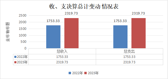 2023年度收、支总计2319.73万元。与2022年度相比,收、支总计各增加566.4万元,增长32.3%。主要变动原因是医疗业务量增长及财政投入医养结合项目经费。