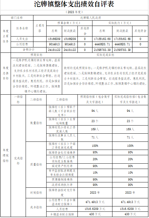 (1)财政支出预期目标完成程度。我镇行政运行工作正常,社会公共基础设施全面建成。