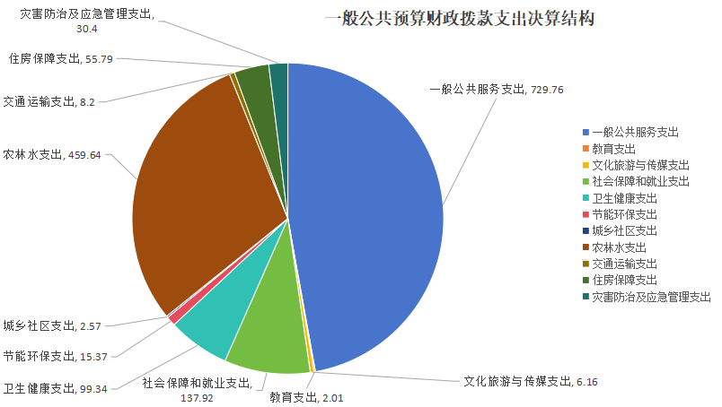 2023年度一般公共预算财政拨款支出1547.16万元,主要用于以下方面:一般公共服务支出729.76万元,占47.2%;教育支出2.01万元,占0.1%;文化旅游体育与传媒支出6.16万元,占0.4%;社会保障和就业支出137.92万元,占8.9%;卫生健康支出99.34万元,占6.4%;节能环保支出15.37万元,占1%;城乡社区支出2.57万元,占0.2%;农林水支出459.64万元;占29.7%;交通运输支出8.2万元;占0.5%;住房保障支出55.79万元,占3.6%;灾害防治及应急管理支出30.4万元,占2%。