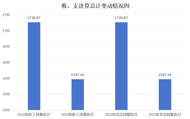 2023年度收支总计均为1547.16万元。与2022年度相比,收、支总计各减少179.71万元,下降10.4%。主要变动原因是项目支出减少。