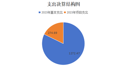 2023年度本年支出合计1547.16万元,其中:基本支出1272.47万元,占82.2%;项目支出274.69万元,占17.8%;上缴上级支出0万元,占0%;经营支出0万元,占0%;对附属单位补助支出0万元,占0%。
