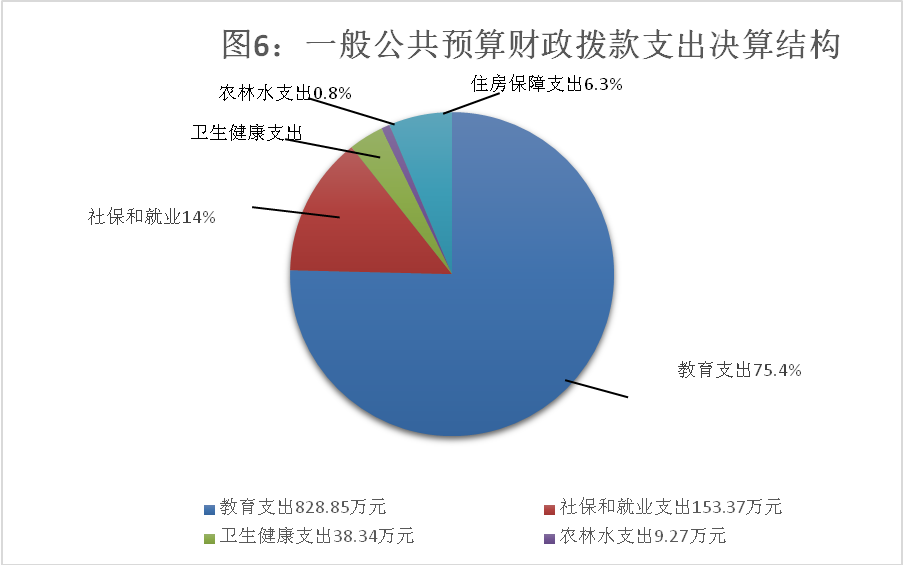 2023年度一般公共预算财政拨款支出1099.39万元,主要用于以下方面:教育支出828.85万元,占75.4%;社会保障和就业支出153.37万元,占13.6%;卫生健康支出38.34万元,占3.5%;农林水支出9.27万元,占0.8%;住房保障支出69.56万元,占6.3%。