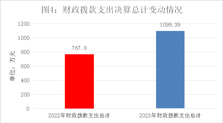 2023年度财政拨款收、支总计均为1099.39万元。与2022年度相比,财政拨款收、支总计各增加331.59万元,增长43.2%。主要变动原因是青果小学合并人员经费增加。