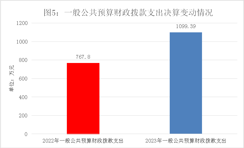 2023年度一般公共预算财政拨款支出1099.39万元,占本年支出合计的100%。与2022年度相比,一般公共预算财政拨款支出增加331.59万元,增长43.2%。主要变动原因是青果小学合并人员经费增加。
