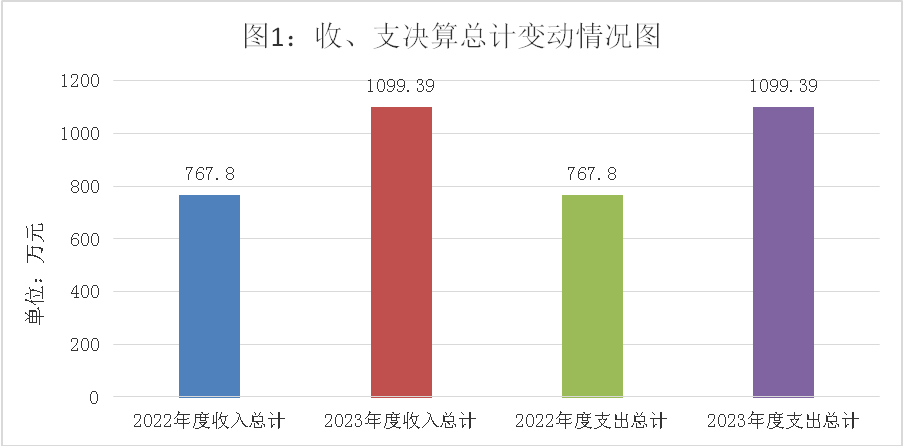 2023年度收、支总计均为1099.39万元。与2022年度相比,收、支总计各增加331.59万元,增长43.2%。主要变动原因是青果小学合校人员经费增加。