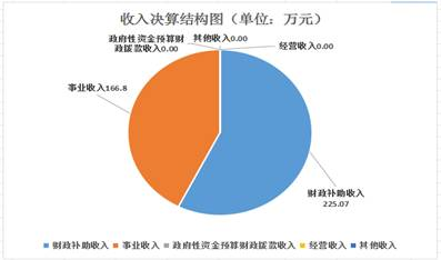 2022年本年收入合计391.87万元,其中:一般公共预算财政拨款收入225.07万元,占57.4%;政府性基金预算财政拨款收入0万元,占0%;国有资本经营预算财政拨款收入0万元,占0%;上级补助收入0万元,占0%;事业收入166.8万元,占42.6%;经营收入0万元,占0%;附属单位上缴收入0万元,占0%;其他收入0万元,占0%。