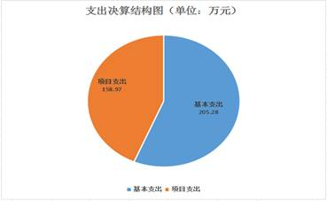 2022年本年支出合计364.25万元,其中:基本支出205.28万元,占56.4%;项目支出158.97万元,占43.6%;上缴上级支出0万元,占0%;经营支出0万元,占0%;对附属单位补助支出0万元,占0%。
