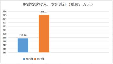 2022年财政拨款收、支总计225.07万元。与2021年相比,财政拨款收、支总计各增加6.31万元,增长2.9%。主要变动原因是受疫情影响,在防控经费补助、人员经费补助等方面投入增加。