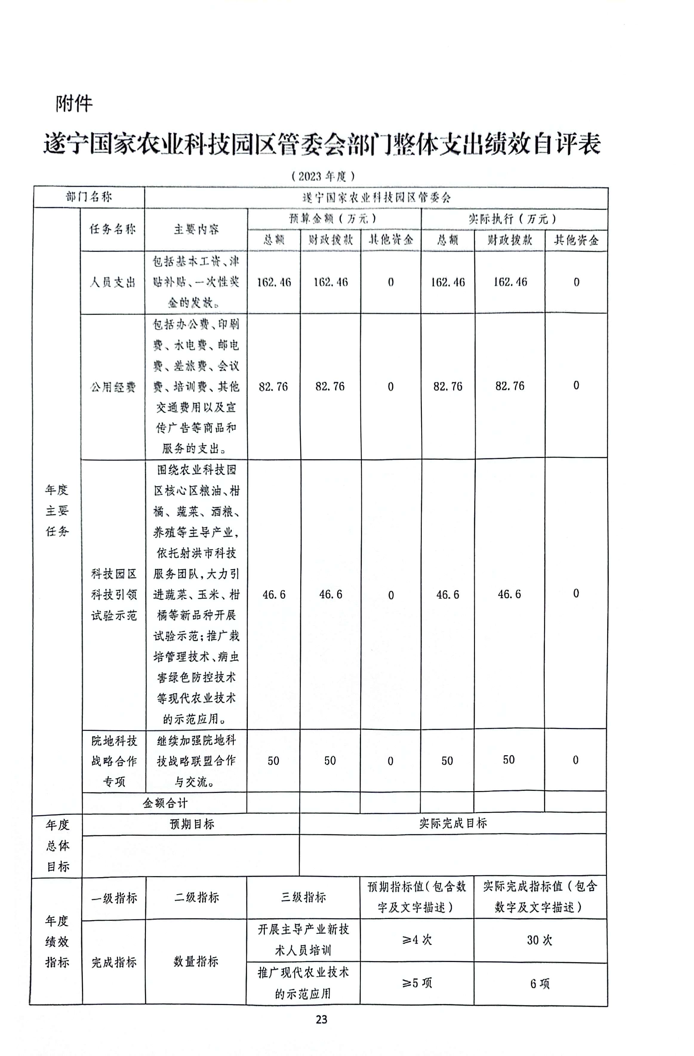 2023年度四川省遂宁国家农业科技园区管委会部门决算