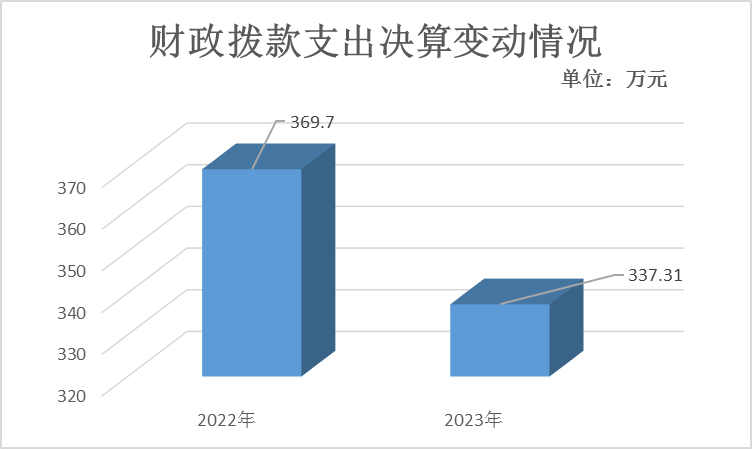 2023年财政拨款收、支总计337.31万元。与2022年相比,财政拨款收、支总计各减少32.39万元,下降9.6%。主要变动原因是厉行节约、减少支出。