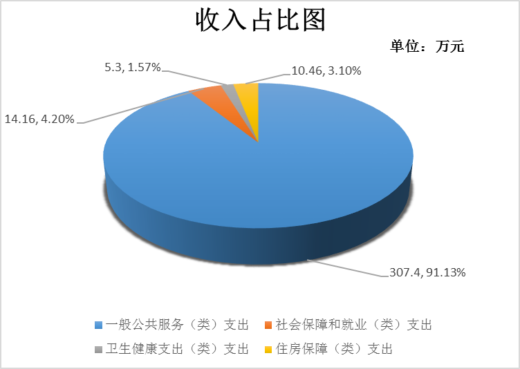 2023年一般公共预算财政拨款支出337.31万元,主要用于以下方面: 一般公共服务支出307.4万元,占91.13%;社会保障和就业支出14.16万元,占4.2%;卫生健康支出5.3万元,占1.57%;住房保障支出10.46万元,占3.1%。