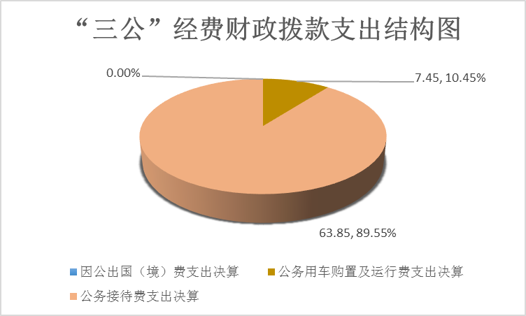 2023年“三公”经费财政拨款支出决算中,因公出国(境)费支出决算0万元,占0%;公务用车购置及运行维护费支出决算7.45万元,占10.44%;公务接待费支出决算63.85万元,占89.55%。具体情况如下: