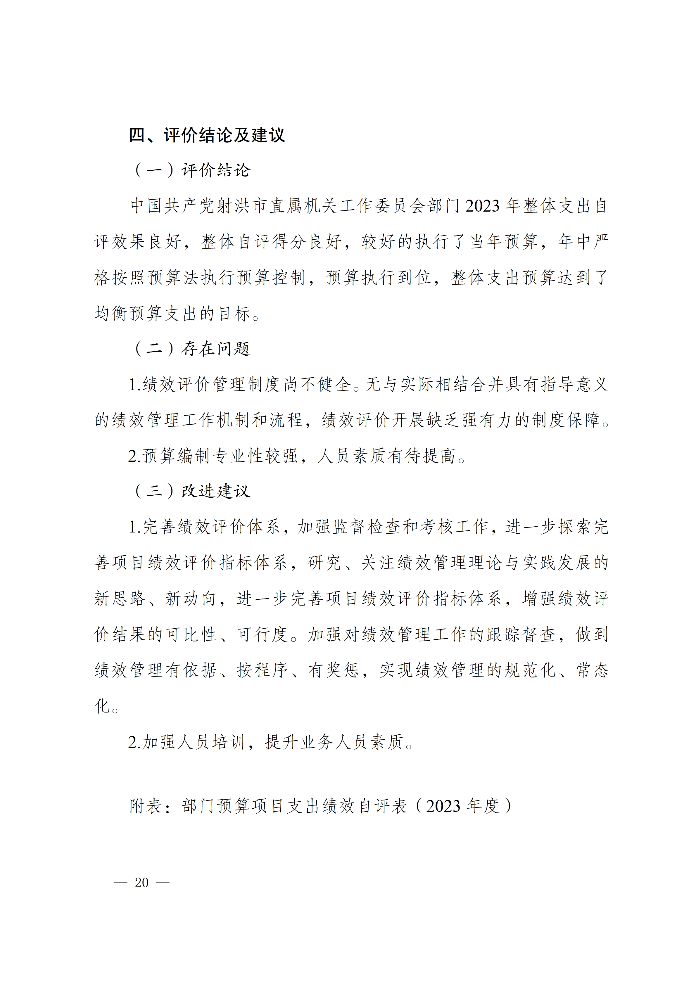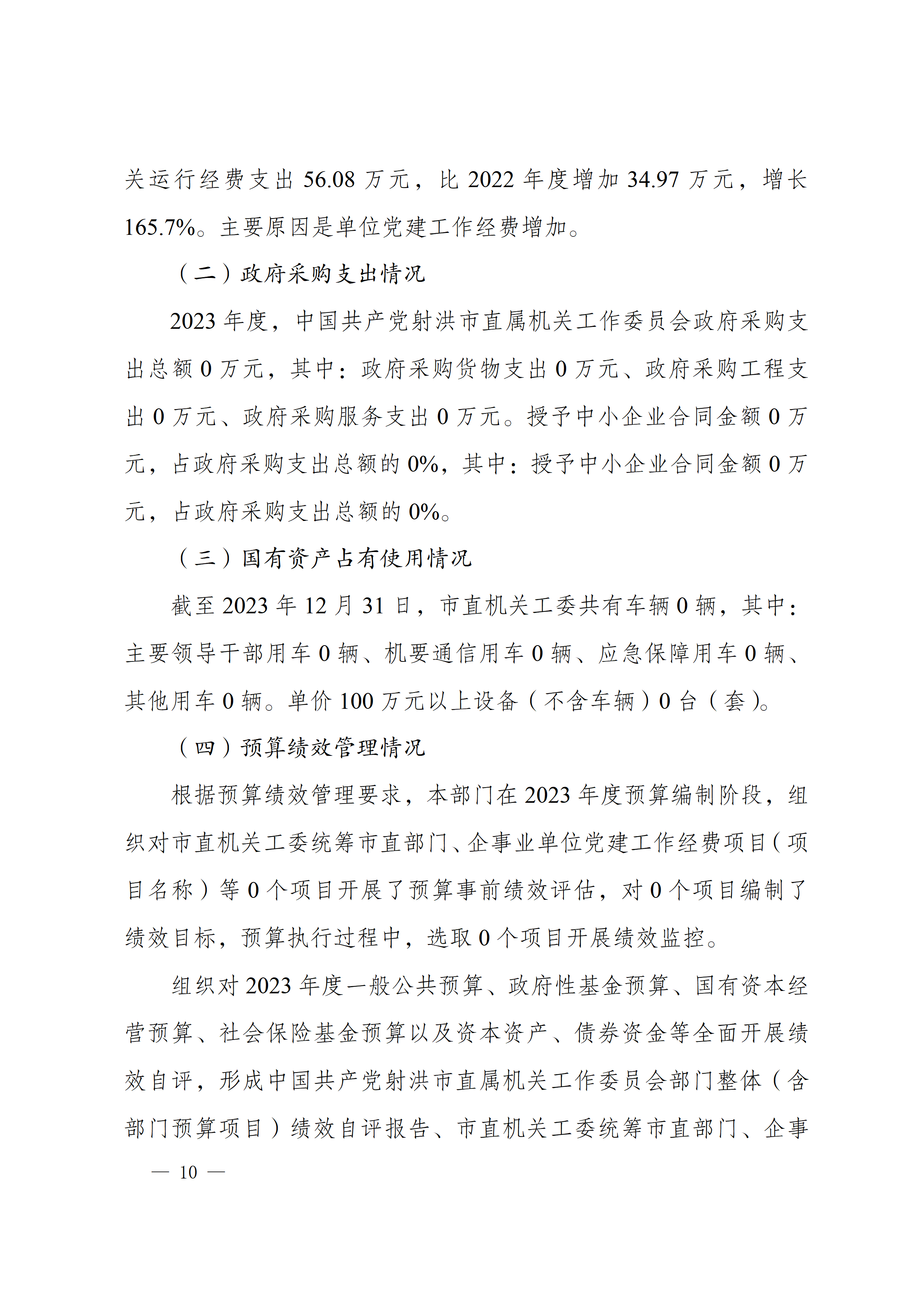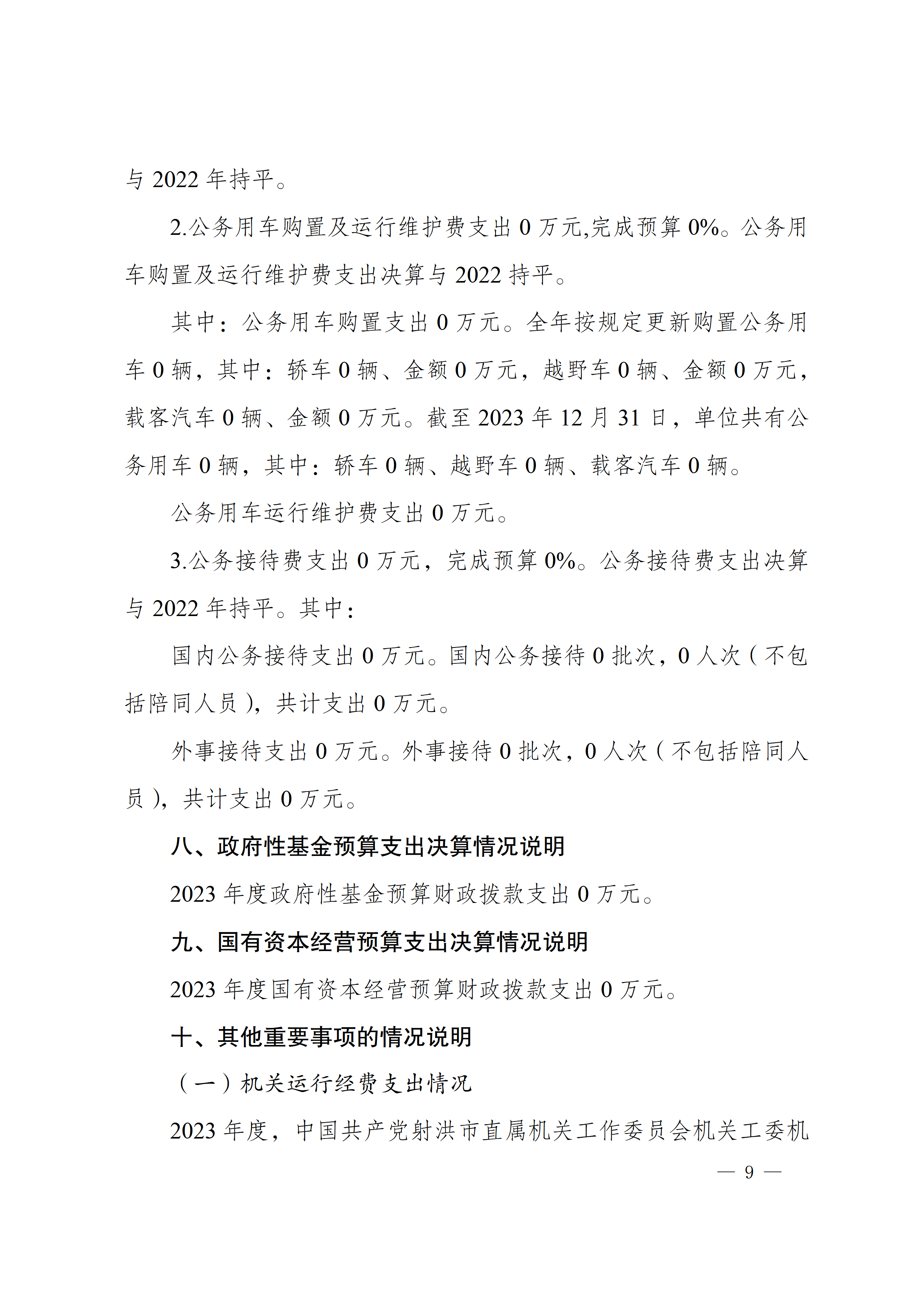 中国共产党射洪市直属机关工作委员会2023年部门决算