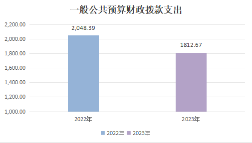 2023年度一般公共预算财政拨款支出1812.67万元,占本年支出合计的100%。与2022年度相比,一般公共预算财政拨款支出减少235.72万元,下降11.5%。主要变动原因是2023年度专项资金项目减少。