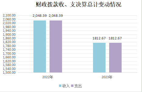 2023年度财政拨款收、支总计均为1812.67万元。与2022年度相比,财政拨款收、支总计各减少235.72万元,下降11.5%。主要变动原因是2023年度专项资金项目减少。