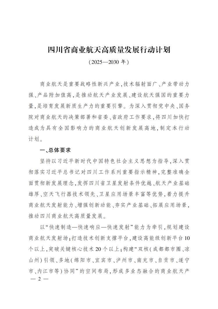 四川省商业航天高质量发展行动计划(2025—2030年)