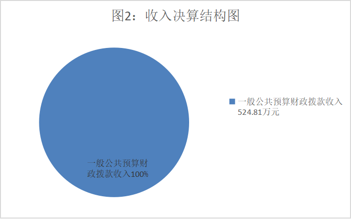 2023年度本年收入合计524.81万元,其中:一般公共预算财政拨款收入524.81万元,占100%;政府性基金预算财政拨款收入0万元,占0%;国有资本经营预算财政拨款收入0万元,占0%;上级补助收入0万元,占0%;事业收入0万元,占0%;经营收入0万元,占0%;附属单位上缴收入0万元,占0%;其他收入0万元,占0%。
