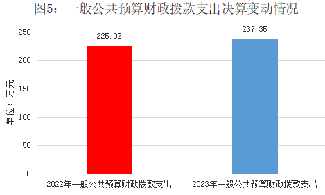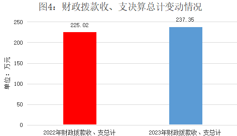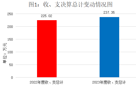 2023年度收、支总计均为237.35万元。与2022年度相比,收、支总计各增加12.33万元,增长5.5%。主要变动原因是人员增减变动及发放在职教师基础性绩效及退休教师生活补助。