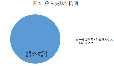 2023年度本年收入合计237.35万元,其中:一般公共预算财政拨款收入237.35万元,占100%;政府性基金预算财政拨款收入0万元,占0%;国有资本经营预算财政拨款收入0万元,占0%;上级补助收入0万元,占0%;事业收入0万元,占0%;经营收入0万元,占0%;附属单位上缴收入0万元,占0%;其他收入0万元,占0%。
