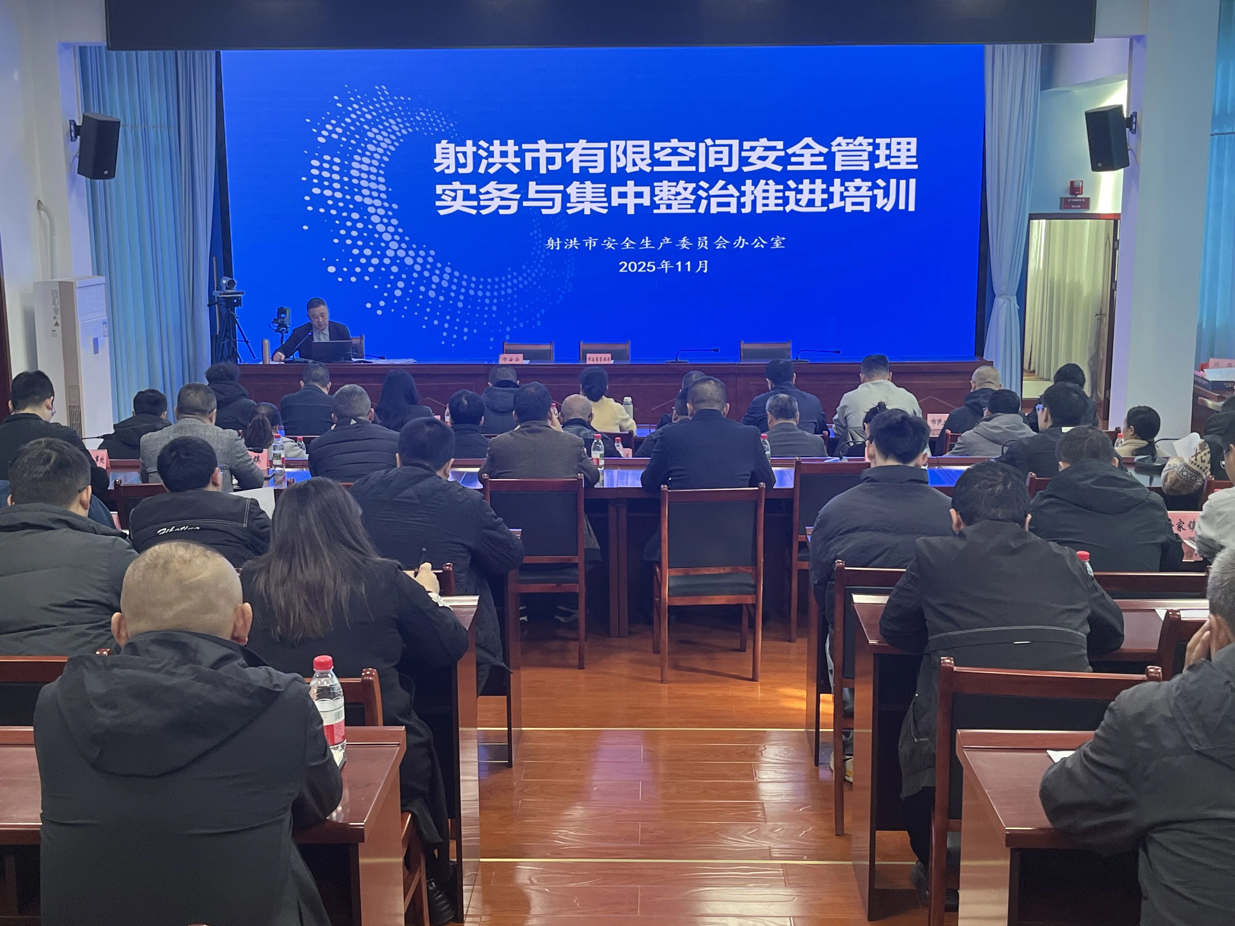 11月11日,射洪市安委会办公室牵头组织“有限空间安全管理实务暨集中整治推进培训”,全市15个重点行业部门、23个镇街分管领导及业务股室负责人齐聚参训,拧紧有限空间作业安全“螺丝扣”。