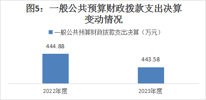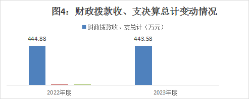 2023年度财政拨款收、支总计均为443.58万元。与2022年度相比,财政拨款收、支总计各减少1.3万元,下降0.2%。主要变动原因是教职工减少。