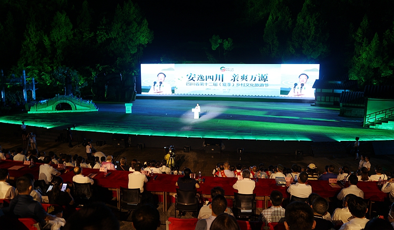 晚上8点30分左右,戴允康、邵革军、胡强、严卫东上台共同启动四川省第十二届(夏季)乡村文化旅游节。