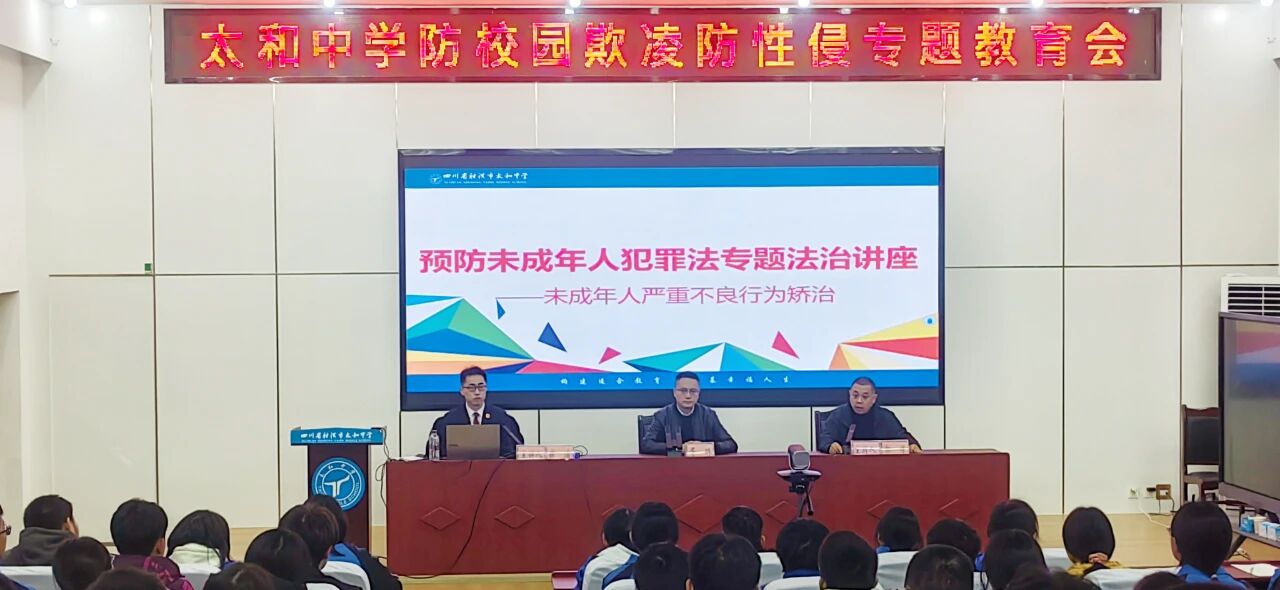 为进一步加强未成年人法治教育,从源头上预防和减少未成年人违法犯罪行为,营造平安和谐校园成长环境,11月23日晚上,市人民检察院第一检察部主任胥明、检察官助理钱浩走进太和中学,为全校师生带来了一堂“预防未成年人犯罪——未成年人严重不良行为矫治”专题法治讲座。