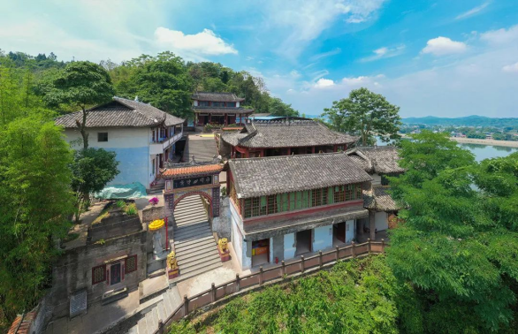 绕过丛生的竹林,在曲折小路间拐几个弯,历史悠久的穿斗木结构的民居映入眼帘,我们进入了光华村。村民们摇着蒲扇聚在一起交谈,飞鸟在“岁岁接福”的禀联楹下起落,村落笼罩着别样的安宁静谧。这里是唐圣僧目连的故乡,是川中铁水火花龙的发源地,亦是千百年来承接东西、连贯南北的川中重要水运码头和盐业重镇。