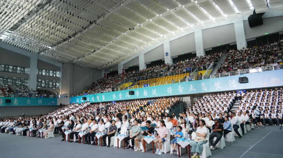 新落成的河东体育馆兼具运动活力与文艺气息,500余名学生现场赛诗,数千名党员干部和各界群众代表齐诵《登幽州台歌》,重温经典,致敬先贤。现场诵读声、欢呼声、掌声此起彼伏,俨然一片诗的海洋。