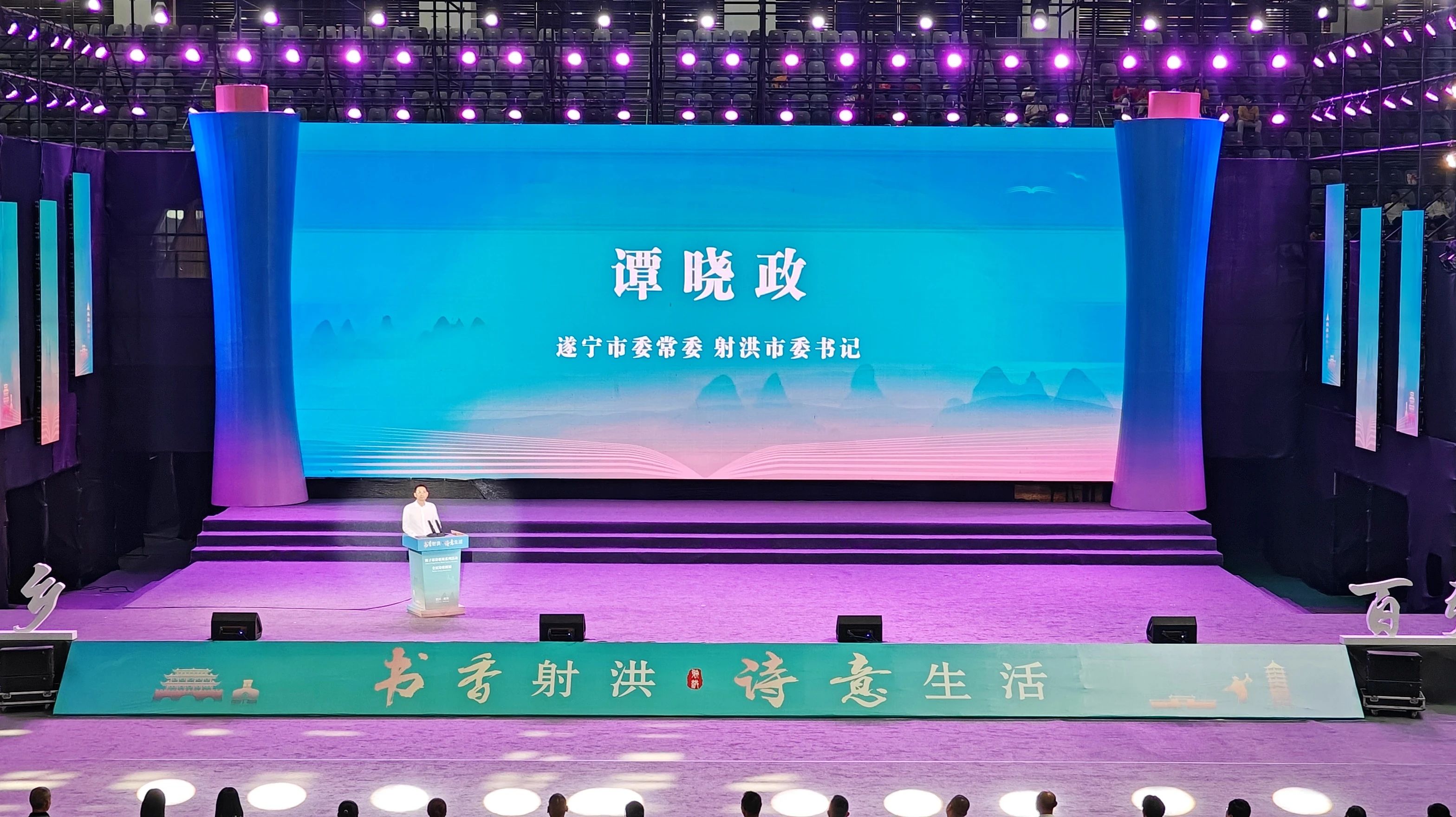 ▲遂宁市委常委,射洪市委书记谭晓政出席活动并致辞。
