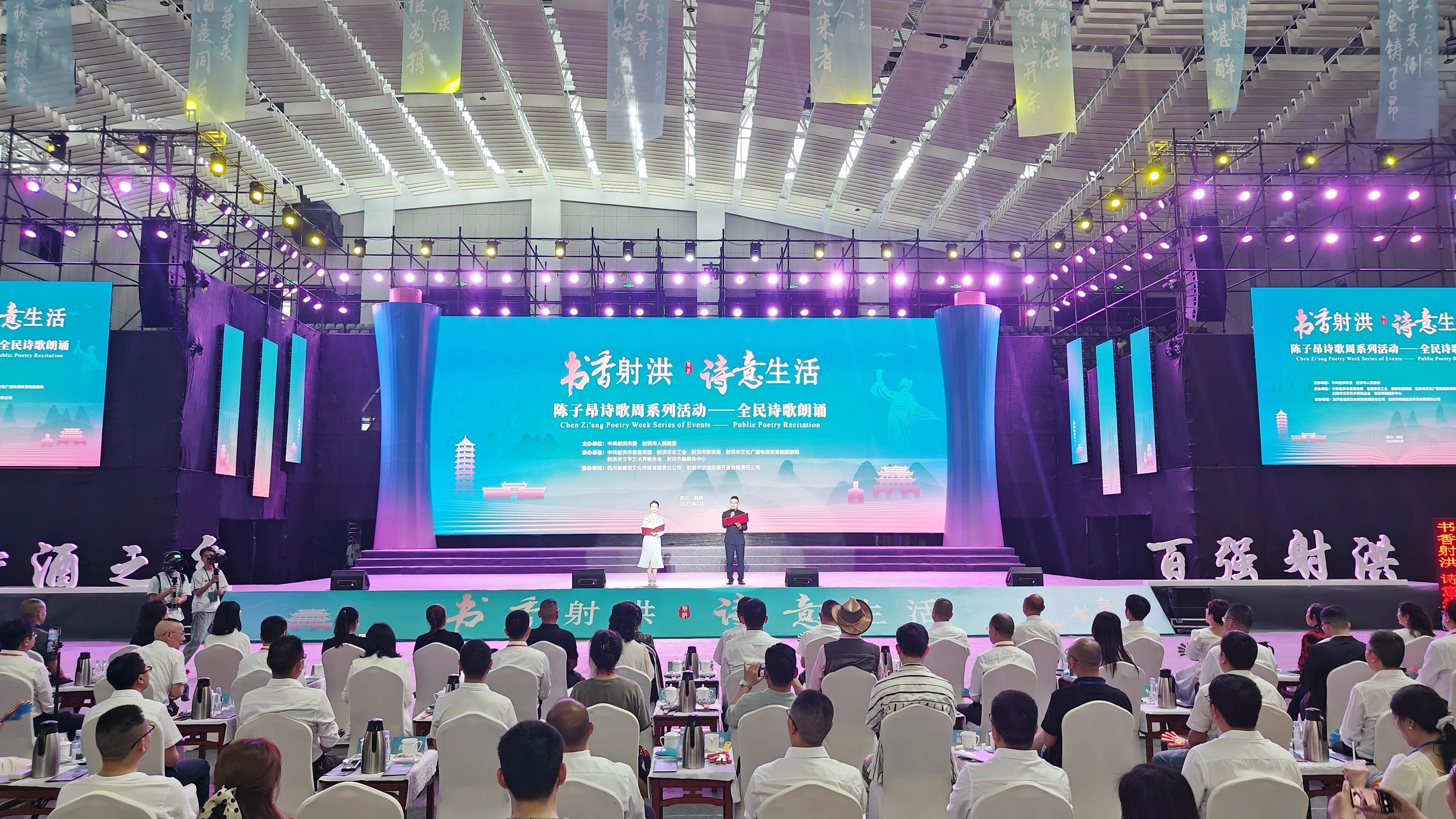 ▲4月20日,“书香射洪·诗意生活”陈子昂诗歌周系列活动之全民诗歌朗诵在射洪河东体育馆举行。