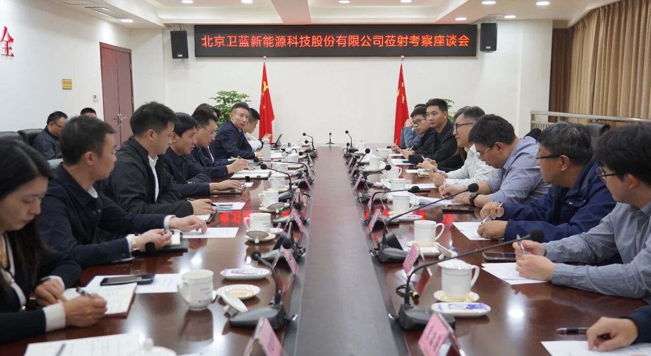 俞会根介绍了企业发展历程、核心技术优势、项目建设进度及下一步战略规划。他表示,射洪作为全国百强县,县域基础完善,政府务实高效,让我们深有感触。射洪在锂电产业布局上的前瞻性、产业链配套的完整性以及营商环境的优越性,让我们对合作充满信心。卫蓝新能源将以此次考察为契机,加快推进拟合作项目落地各项前期工作,同时期待与射洪本土企业开展技术协同、产业链配套等深度合作,充分发挥卫蓝新能源以及清华大学、中国科学院等科研团队优势,共同打造技术领先、效益显著的产业项目,为射洪经济高质量发展贡献力量。