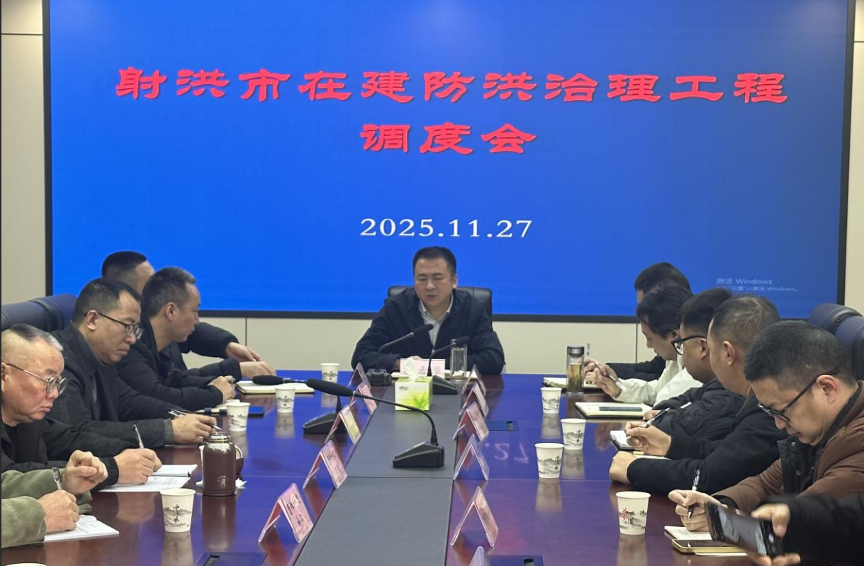 2025年11月27日,射洪市水利局局长安希学同志主持召开射洪市在建防洪治理工程专题调度会。沈水河射洪市防洪治理工程、涪江右岸射洪市瞿河场镇段防洪治理工程、射洪市涪江流域水利基础设施建设项目(一期)香山段防洪治理工程3个项目5个标段的业主、施工、监理单位,以及水利局有关负责同志参会。会议听取了各施工标段的当前进度情况、存在的问题、下一阶段工作计划。